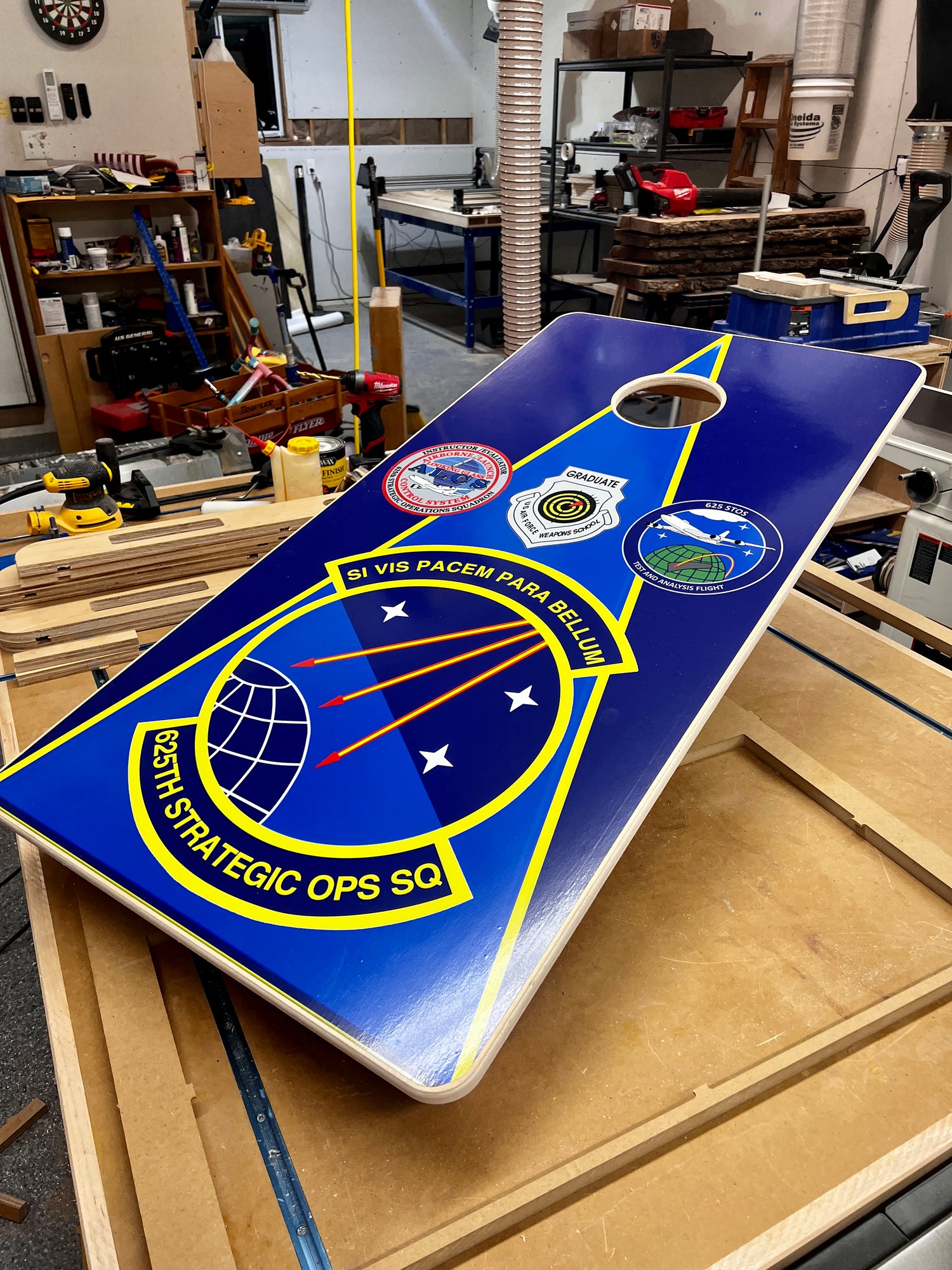 This set of corn hole boards was ordered by a customer who wanted a special gift for his squadron before he moved on to his next duty.